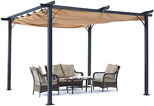 Este cenador de 11x11 pies con dosel retráctil es ideal para patios o jardines. Su estructura de acero ofrece resistencia a la intemperie y estabilidad. El diseño moderno permite ajustar la sombra según las necesidades. Perfecto para eventos al aire libre o relajación, embellece cualquier espacio exterior. Su montaje sencillo lo convierte en una opción práctica y elegante.
