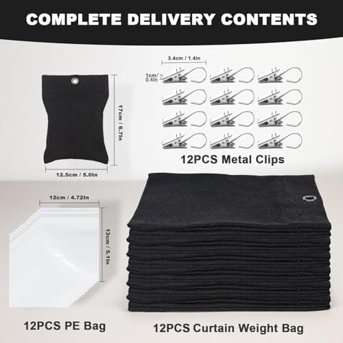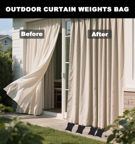 Este conjunto de 12 pesas para cortinas de exterior asegura telas contra fuertes vientos. Las bolsas de lona, con capacidad para 450 g, incluyen clips de acero inoxidable que protegen las telas. Las bolsas de PE selladas evitan la suciedad, y el velcro refuerza la seguridad. Perfecto para patios, gazebos o manteles, su instalación es sencilla. Lavable a máquina, mantiene su estética elegante durante todo el año.